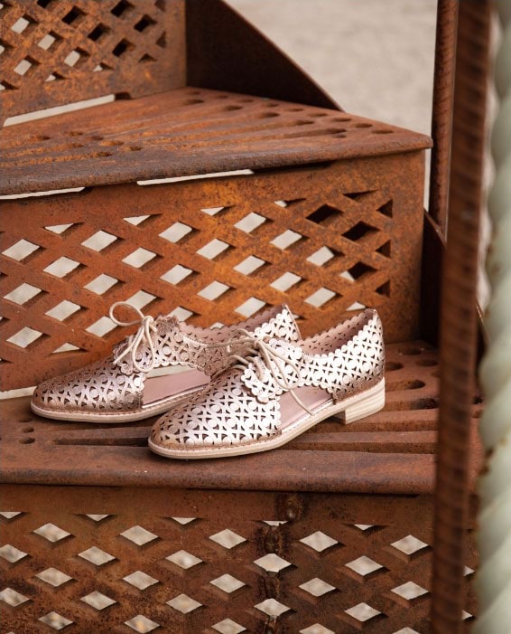A focus on elegant neutrals contrasted with down-to-earth textures sees a plethora of details from laser cut leather and braided straps to basket-woven buckles and exposed wooden soles.